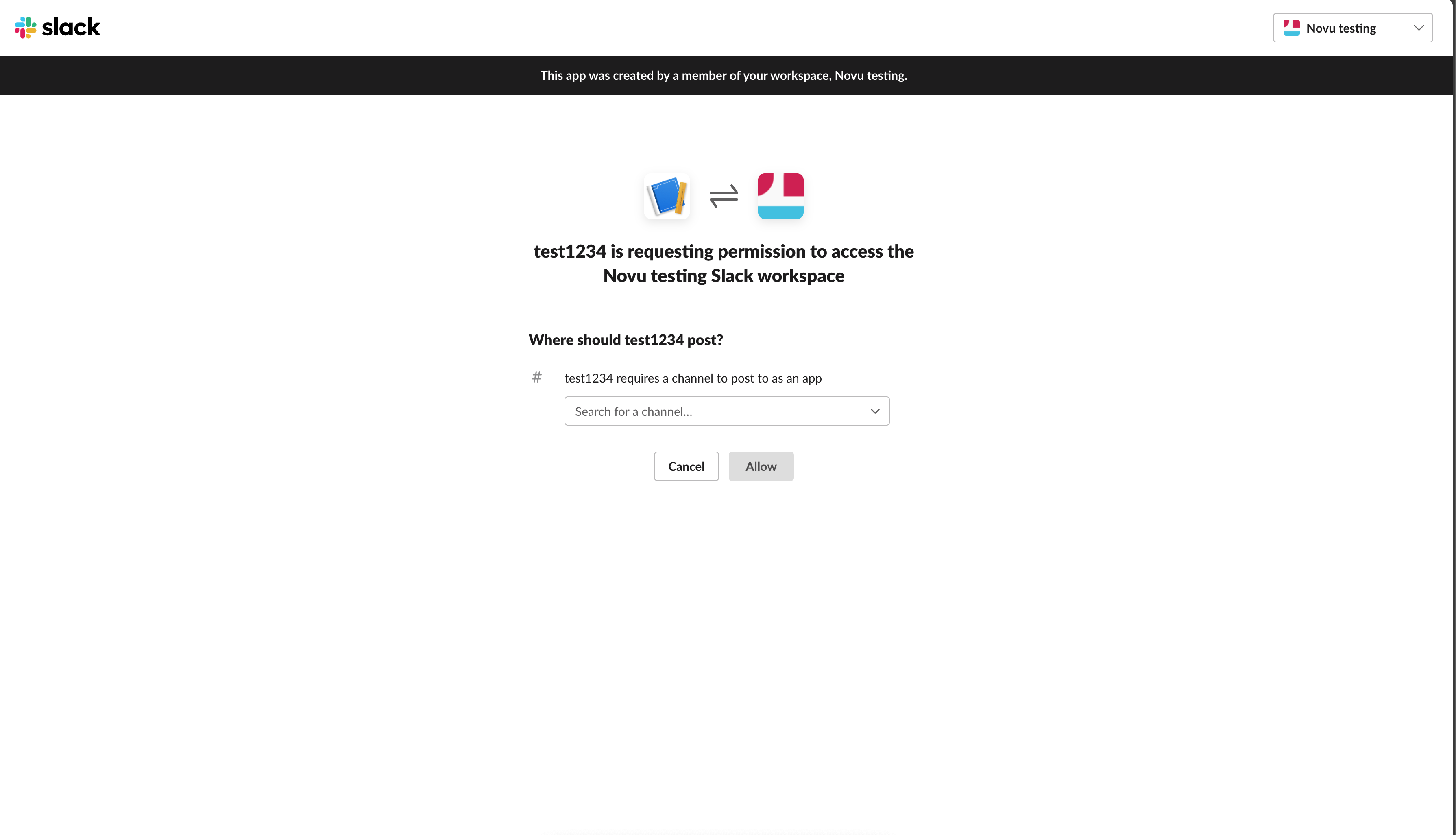 - Now, go ahead and select the channel in which you want to send notifications and click ‘allow’.