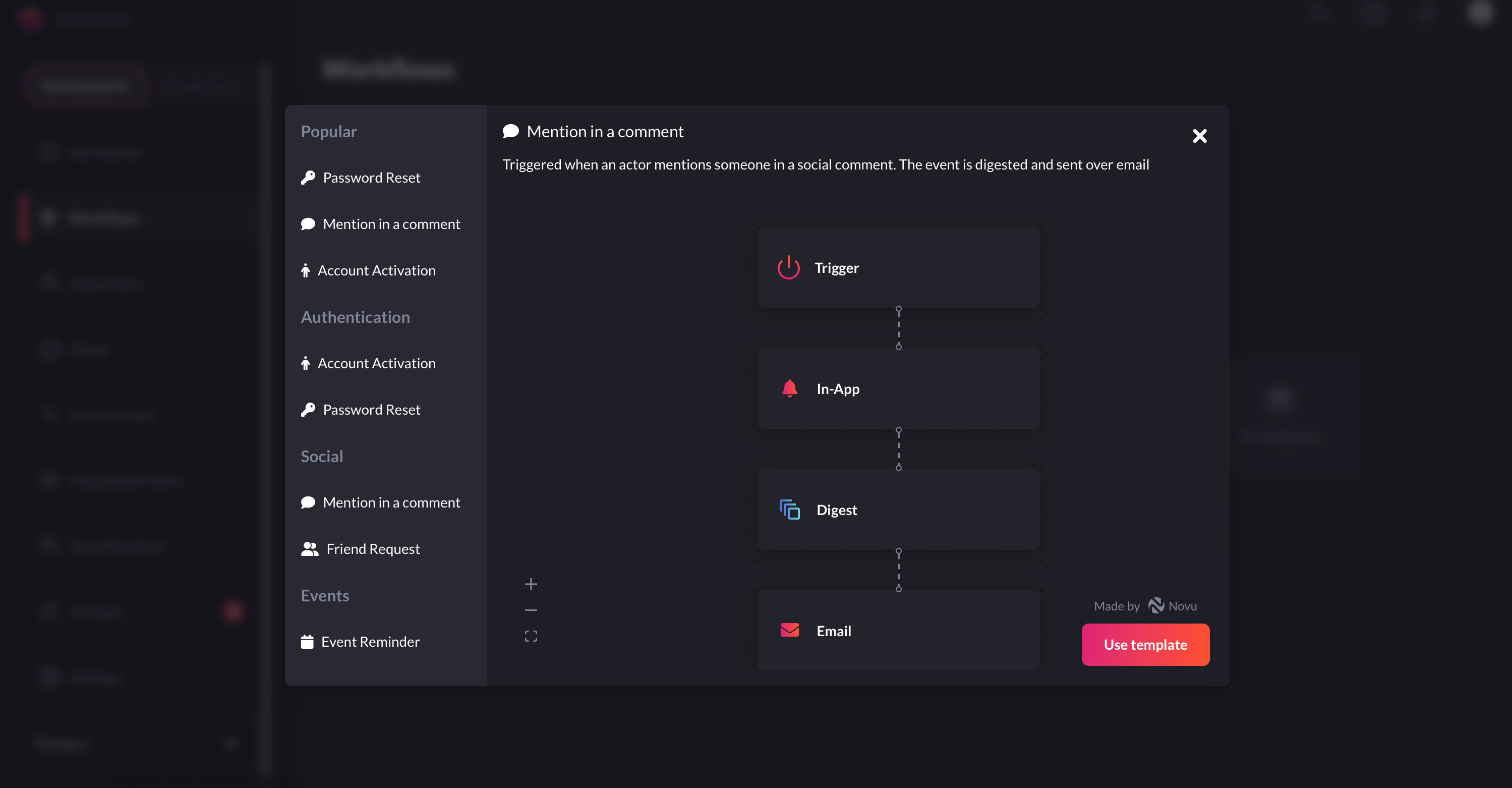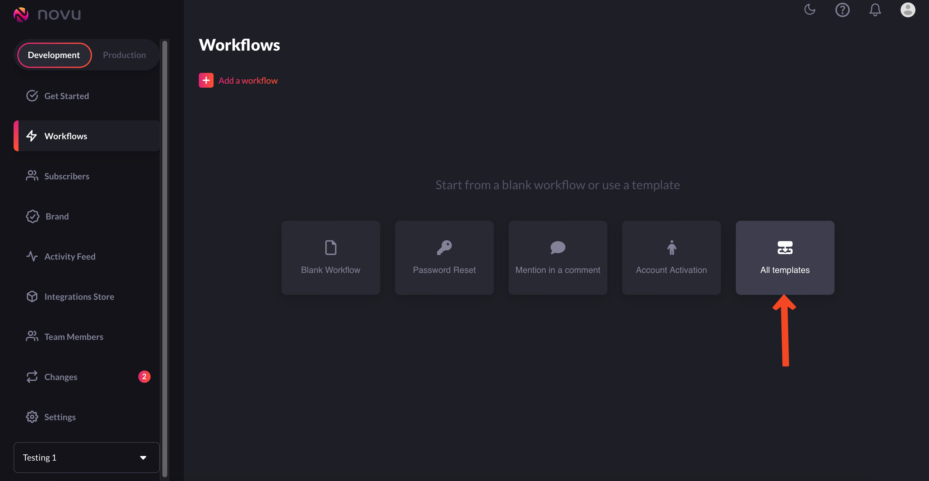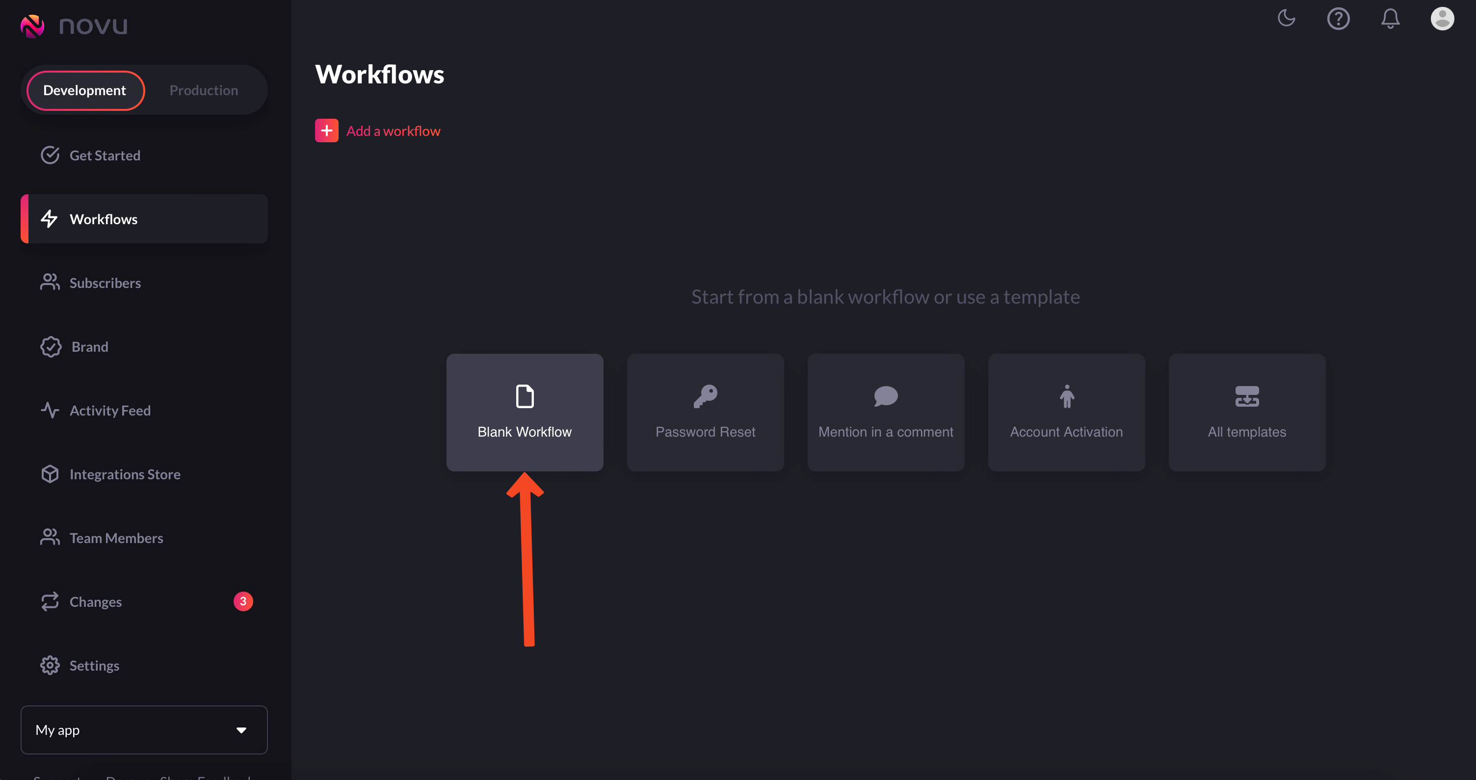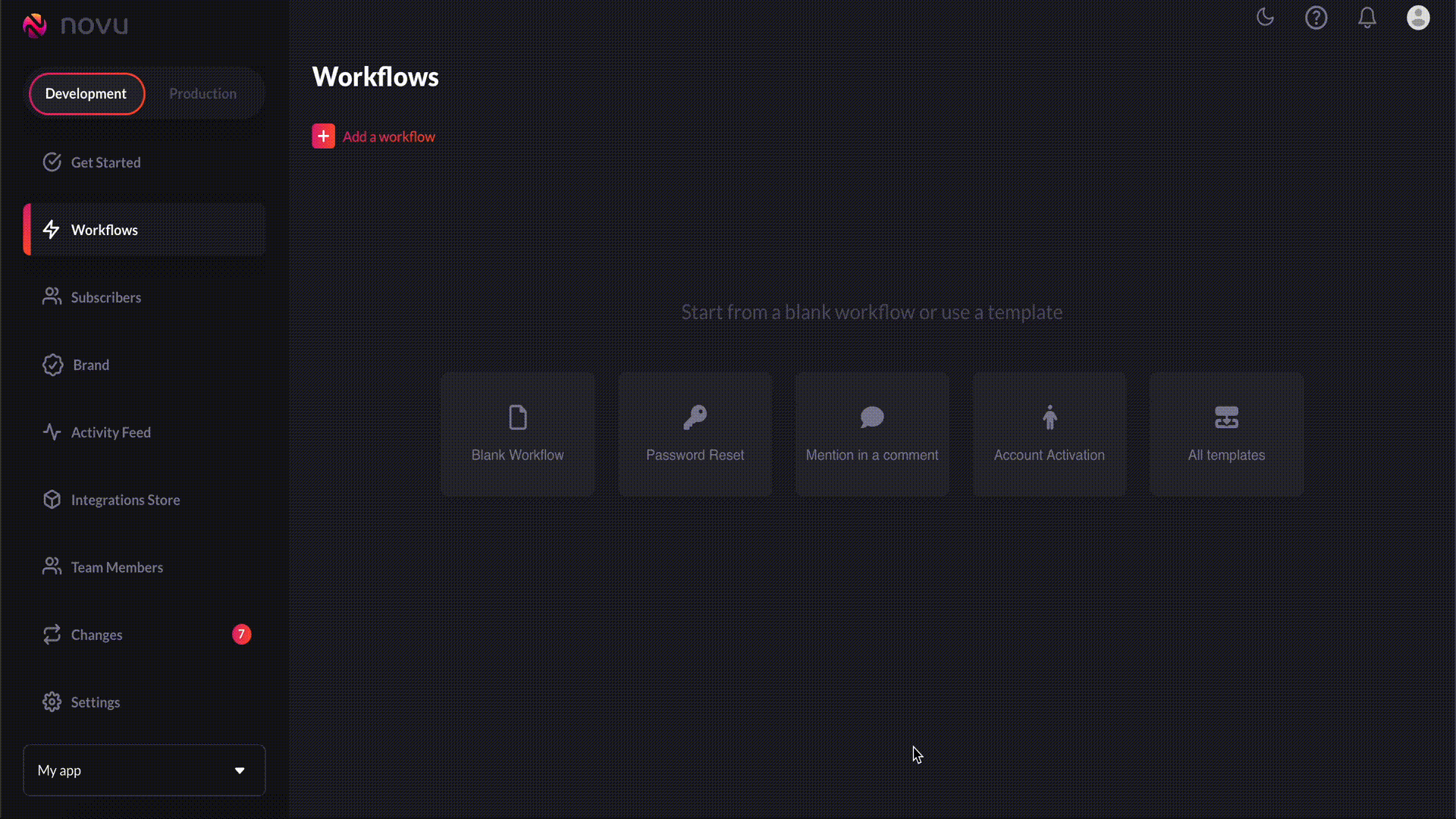 workflowson the Novu web dashboard.