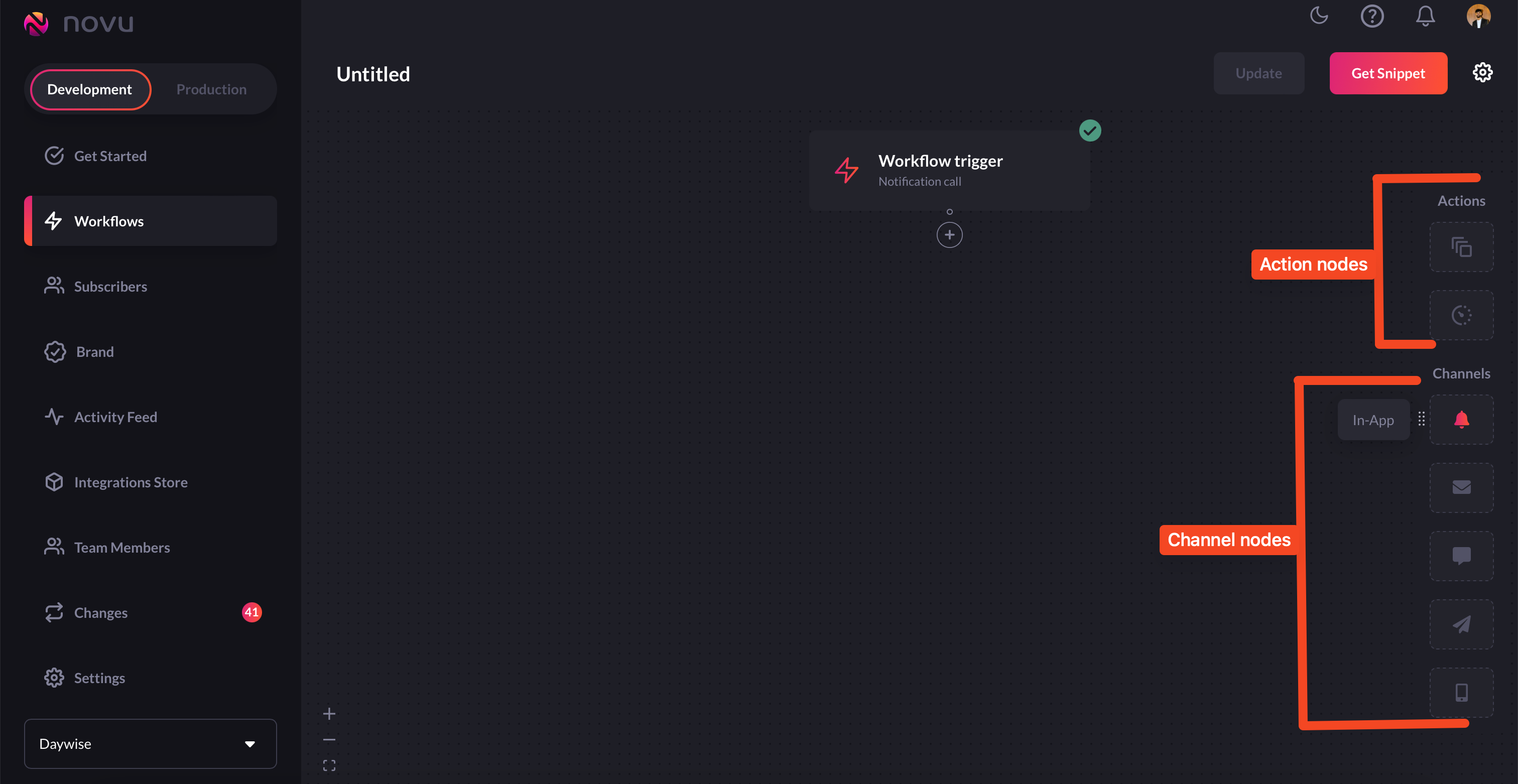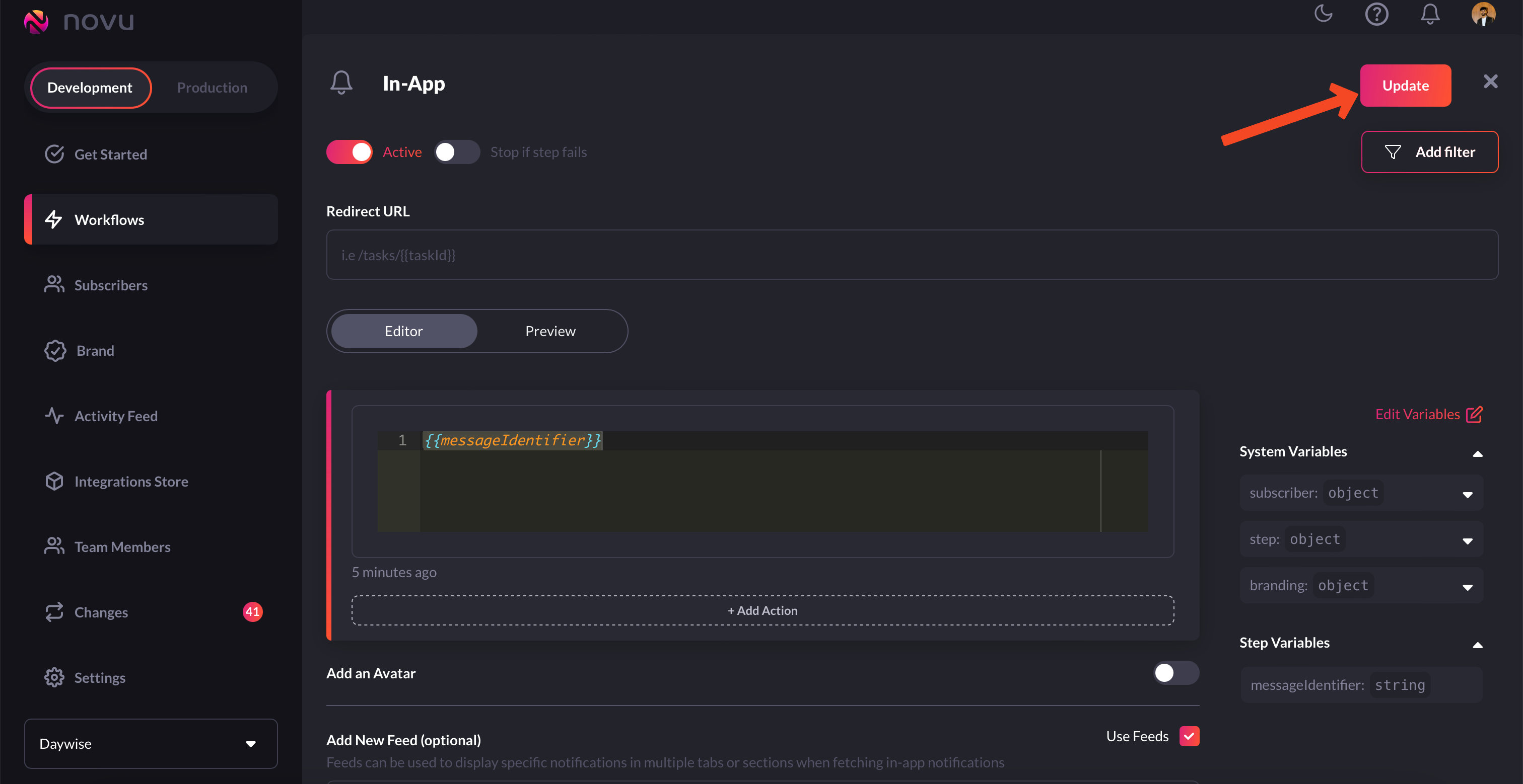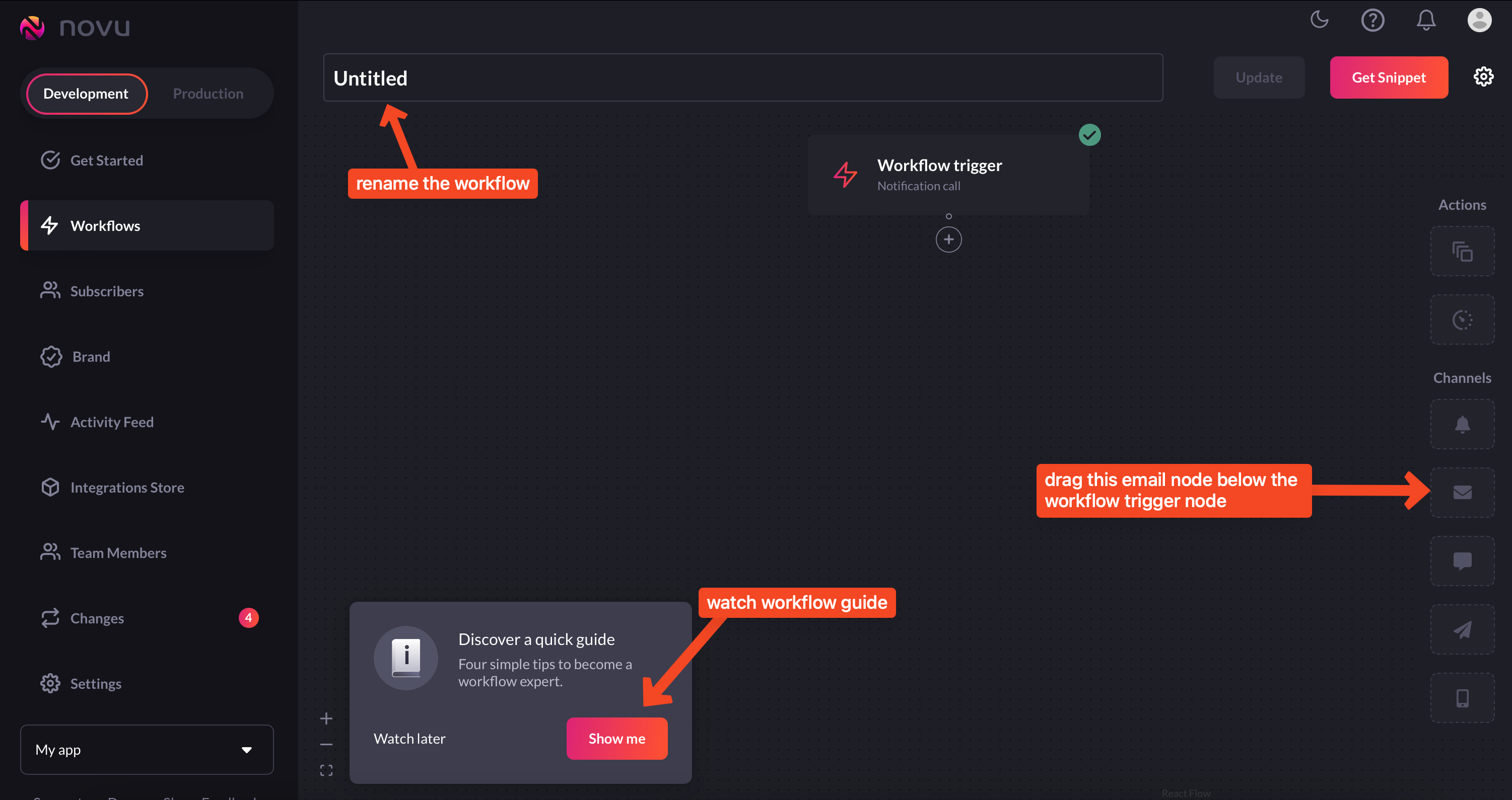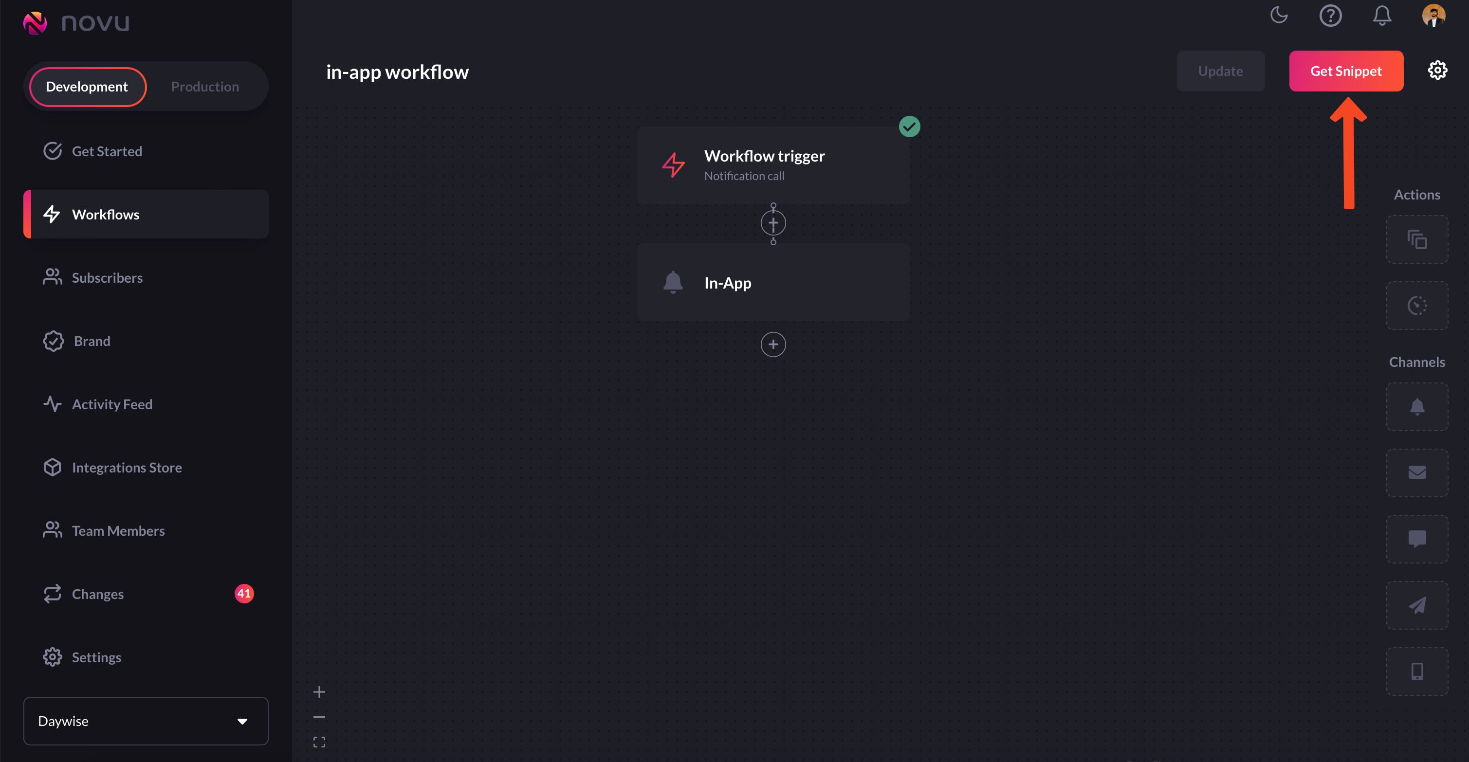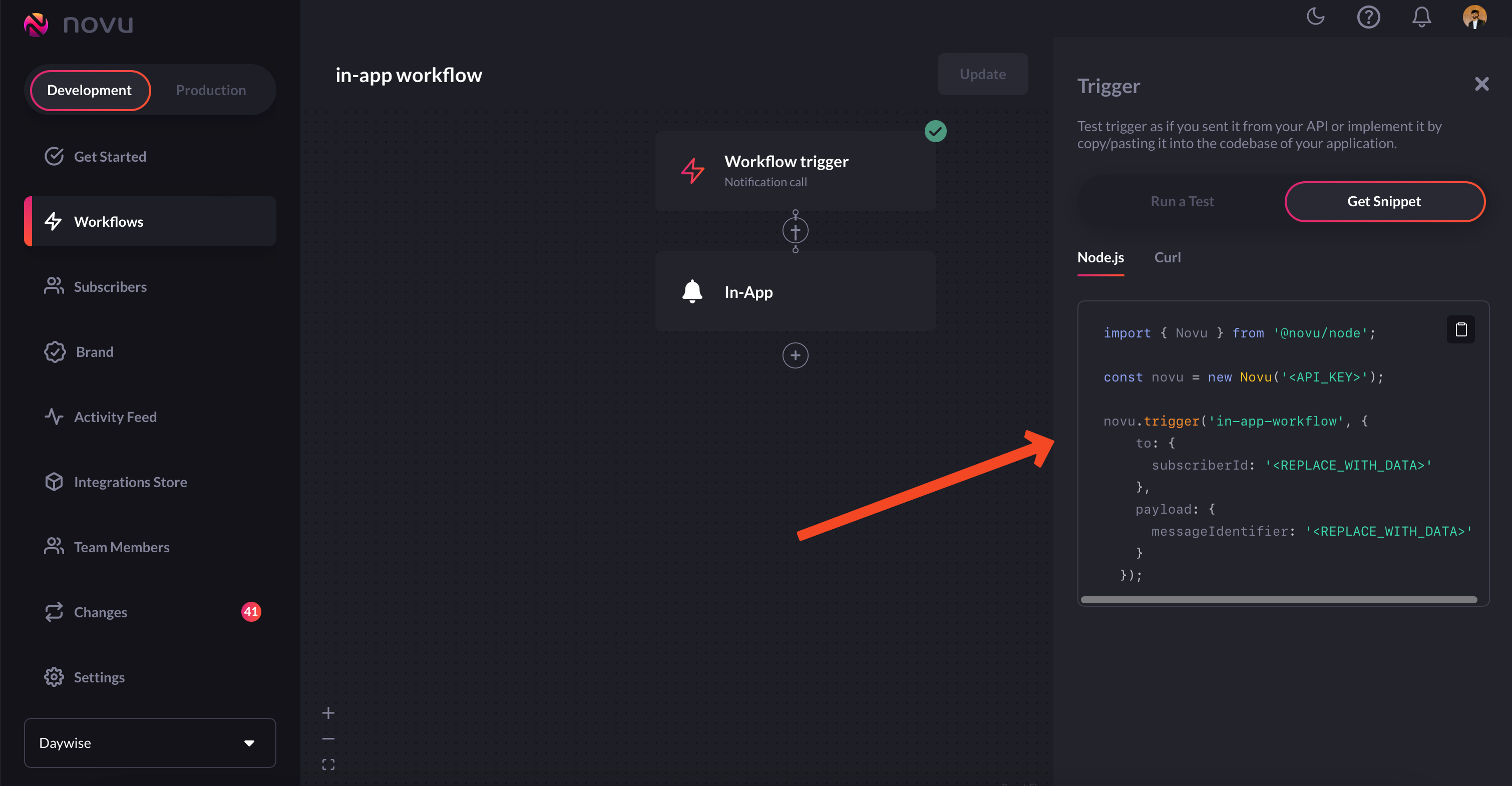 Creating workflows for sending in-app notifications is pretty straightforward. Just follow the following steps and you’ll be good to go:-