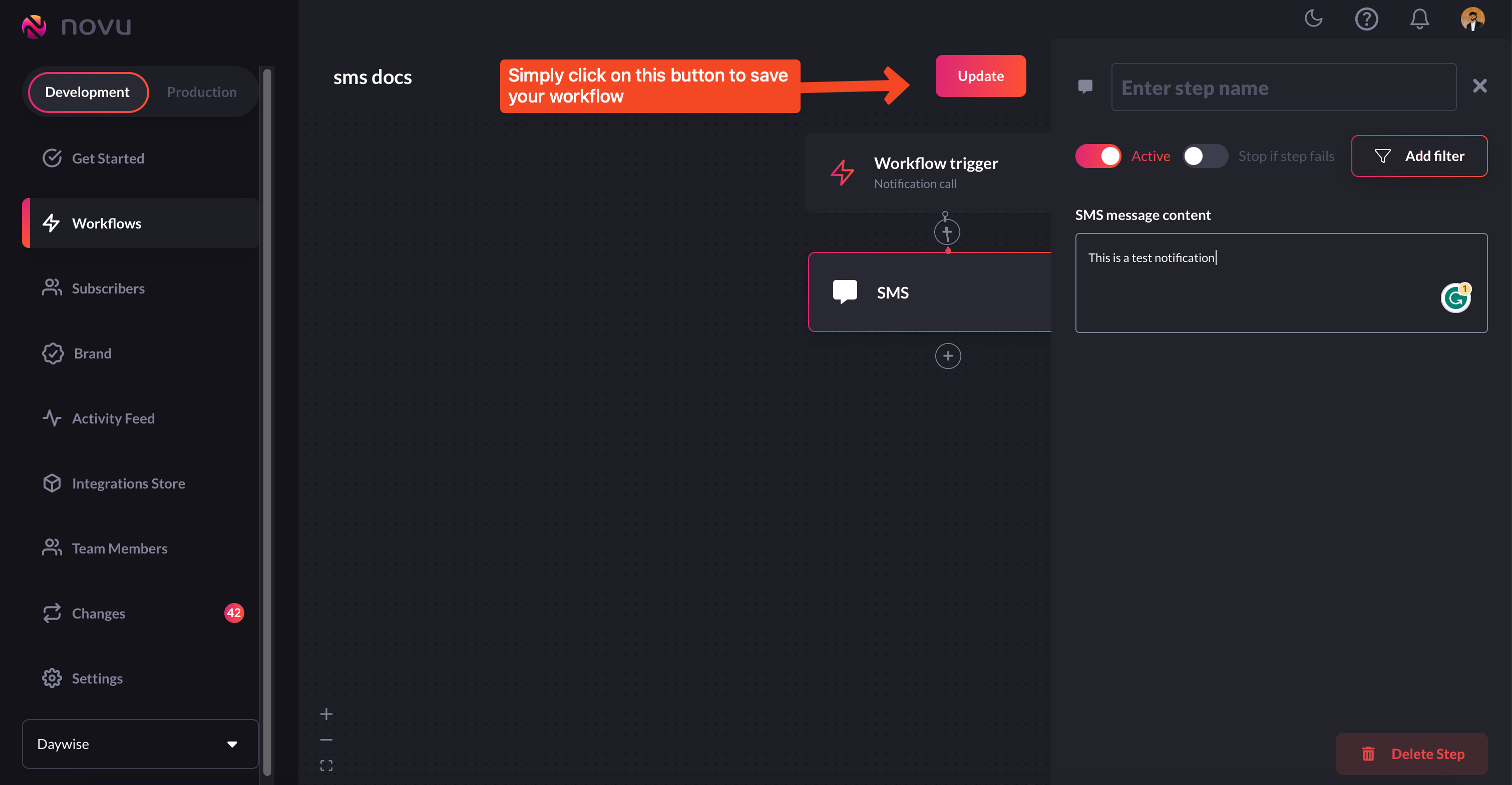 Add the SMS step to the workflow