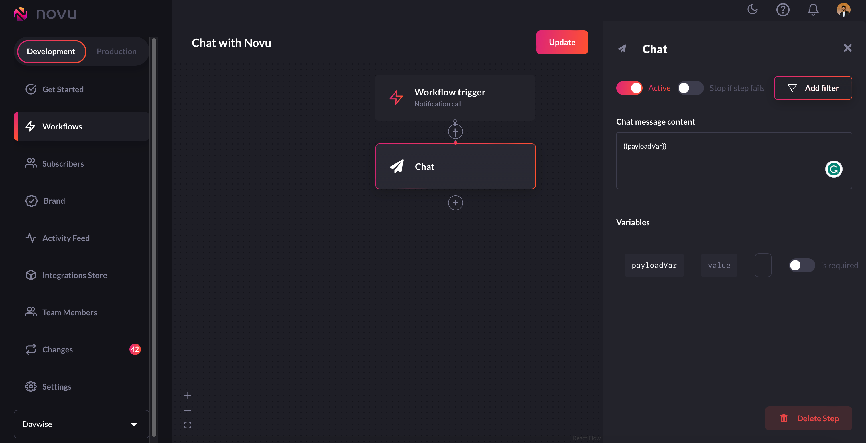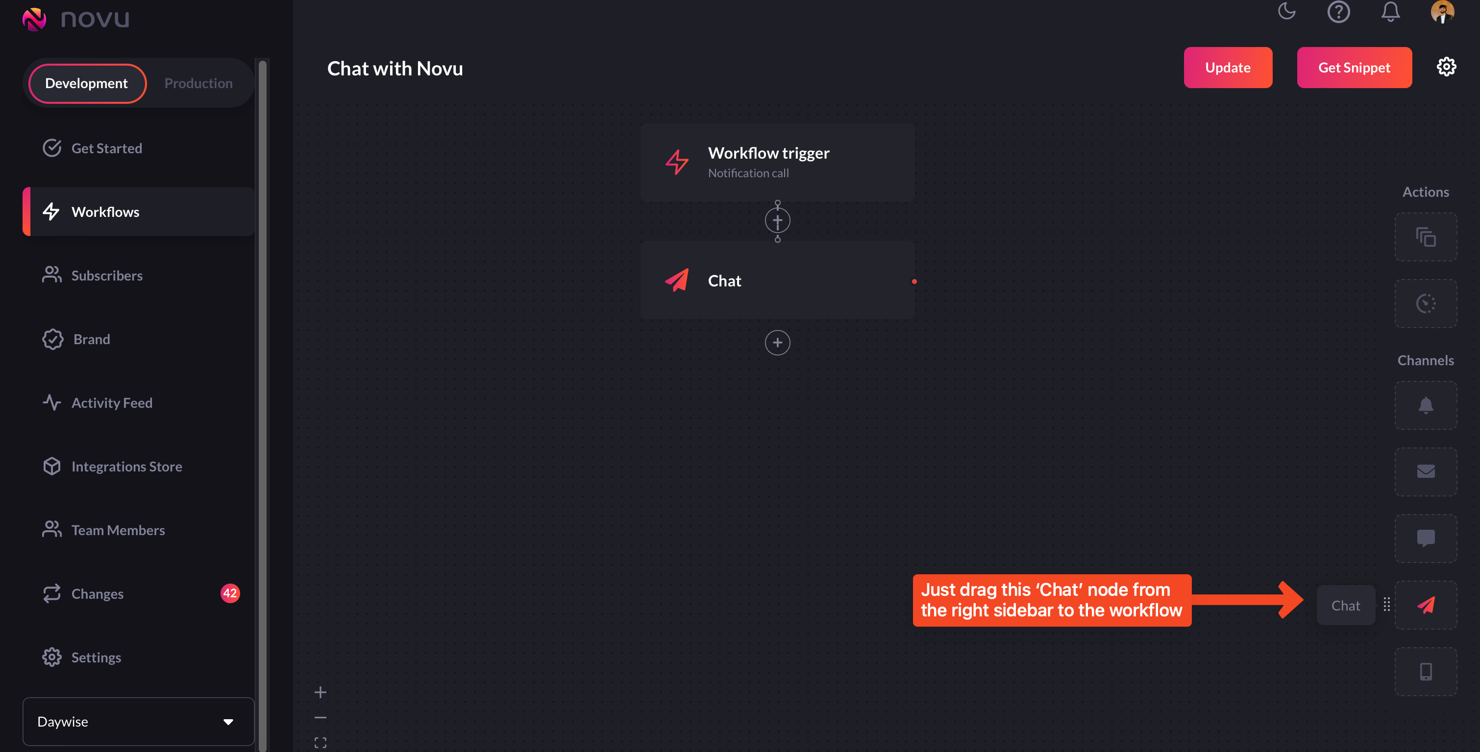Chat workflows are quite similar to email, in-app, and SMS workflows workflows we’ve created above. Let’s take a look at it in detail:-