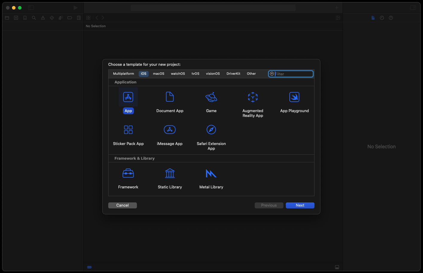 Open Xcode and create a new project, choosing the App template. Give your project a name, and select your name as the team for now, or leave it blank. Your bundle identifier will be generated here — you will use this later when connecting to Firebase. Select SwiftUI as your interface and Swift as your language.