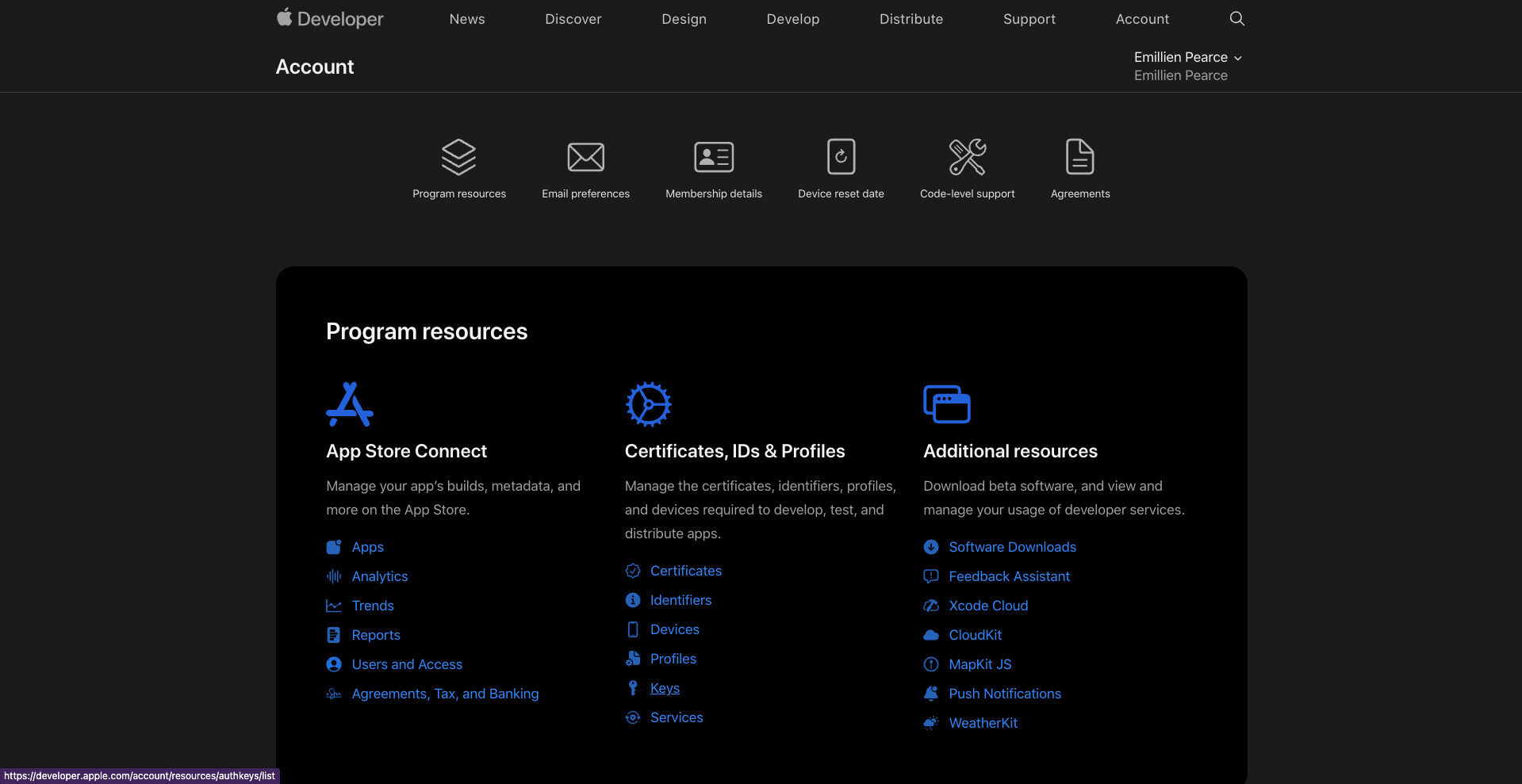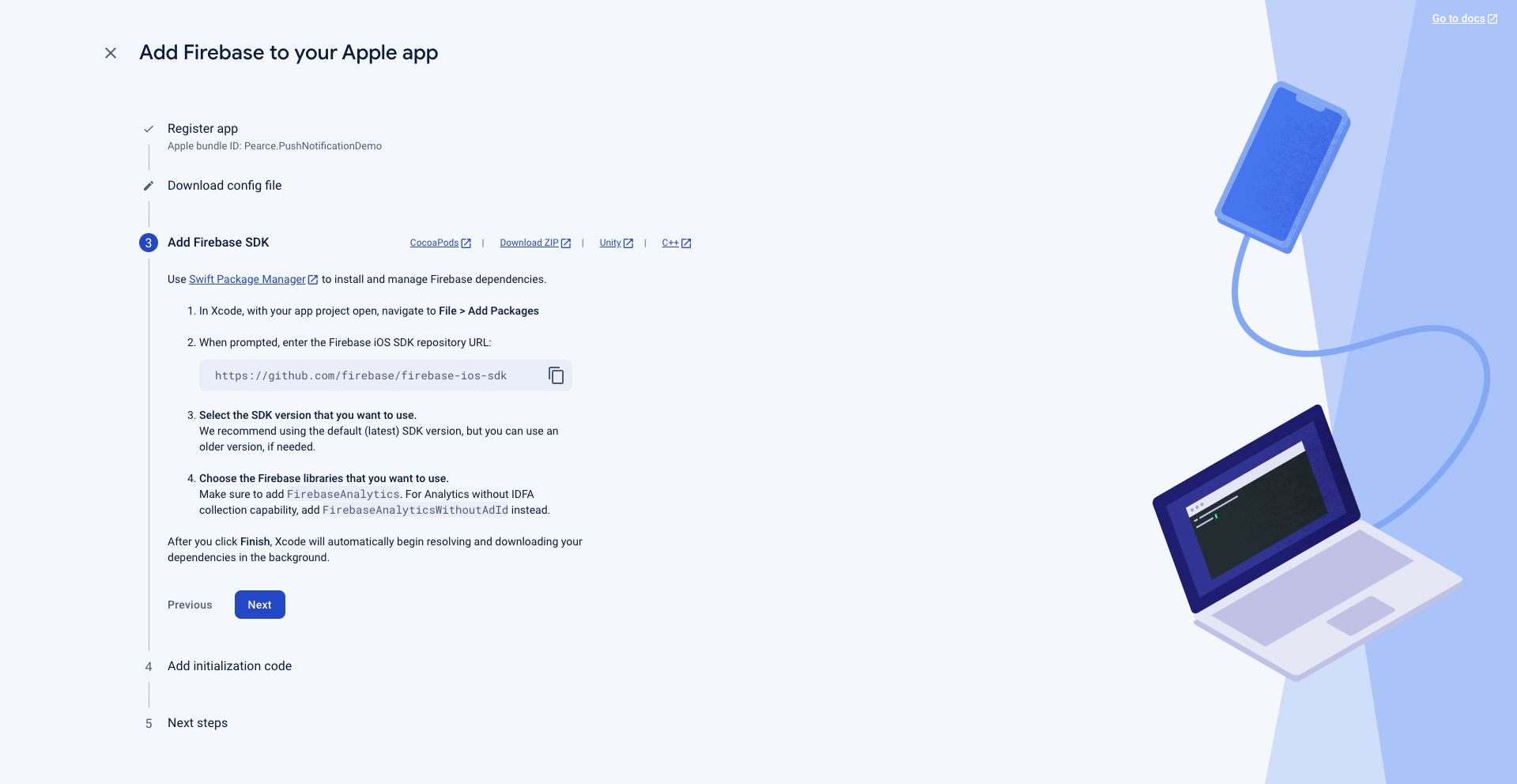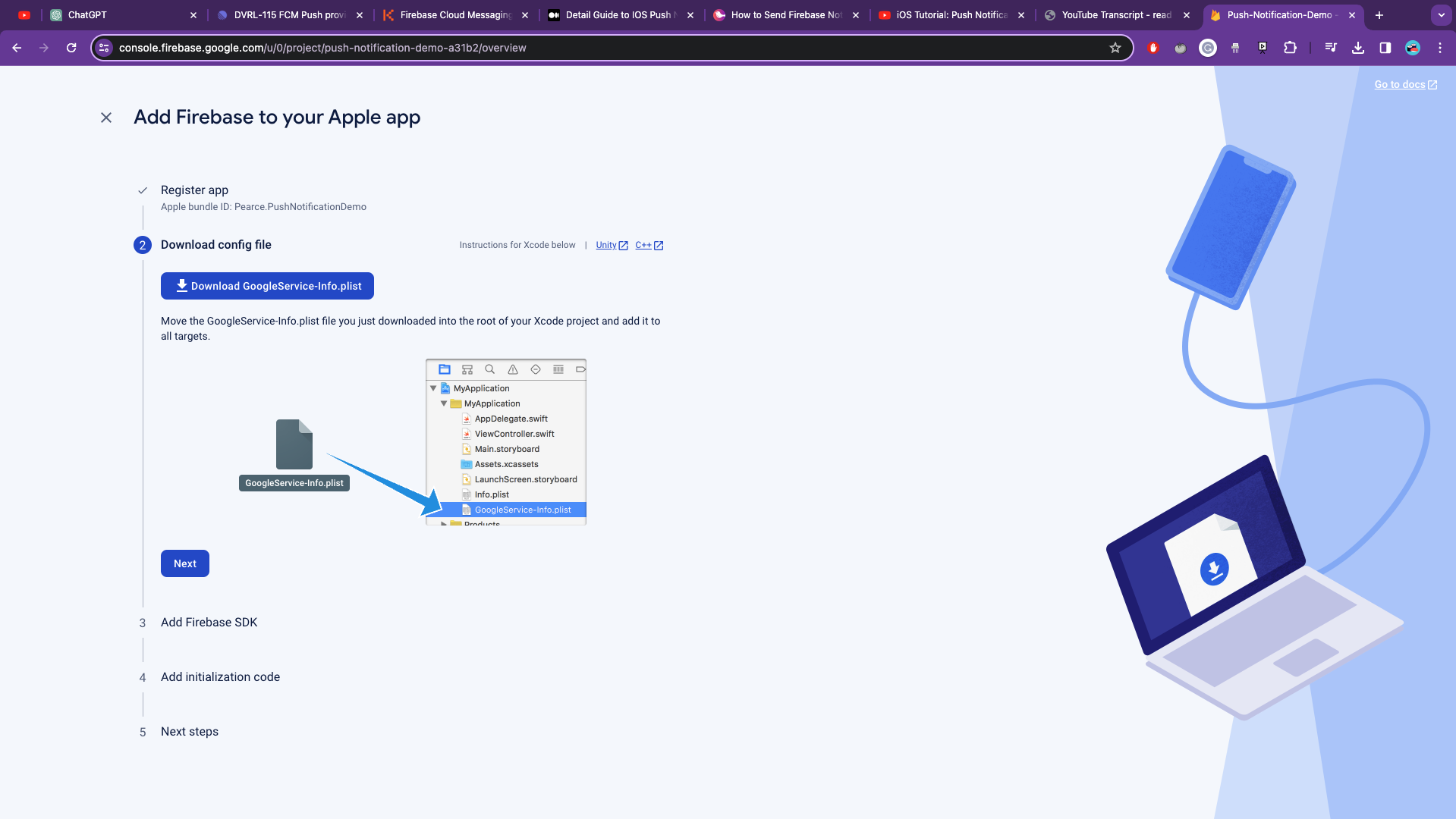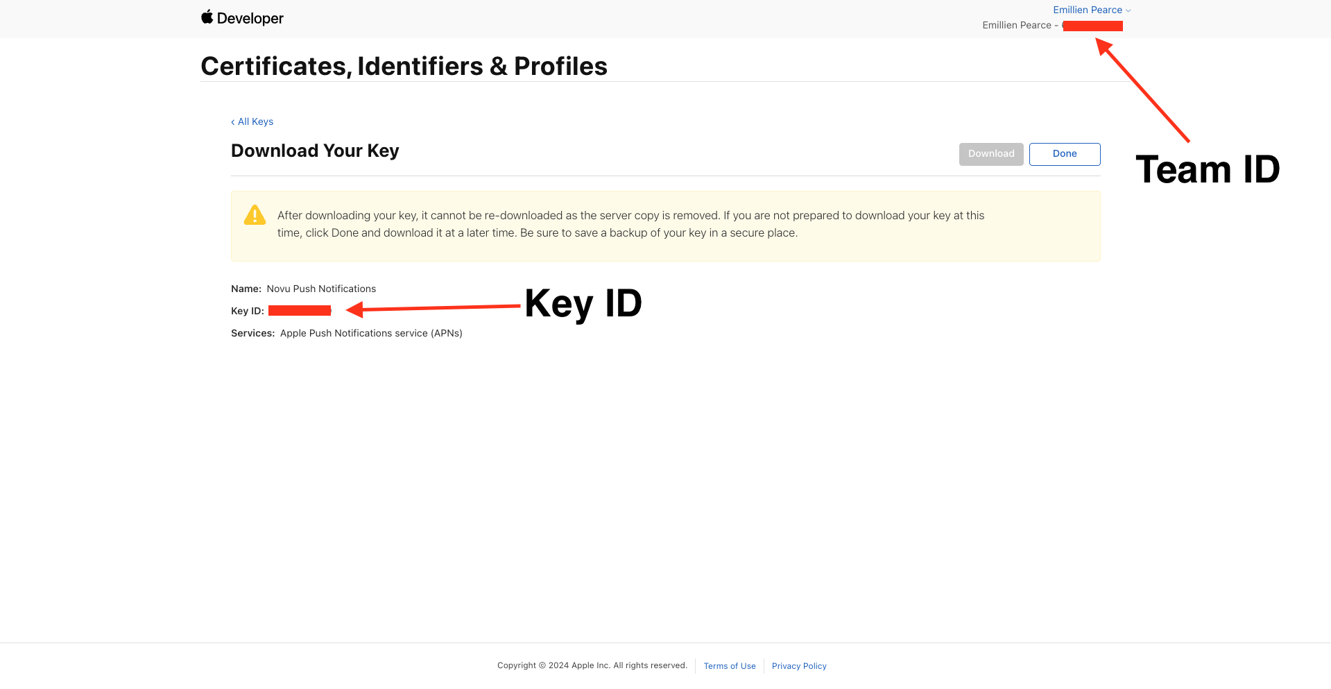 We will create and upload our APNs authentication key to the Firebase project settings.