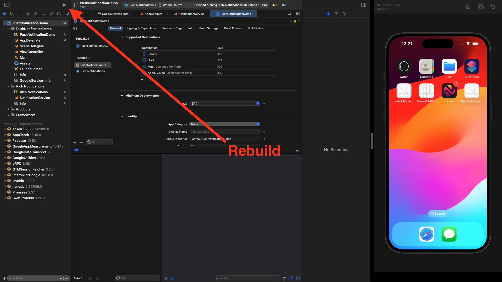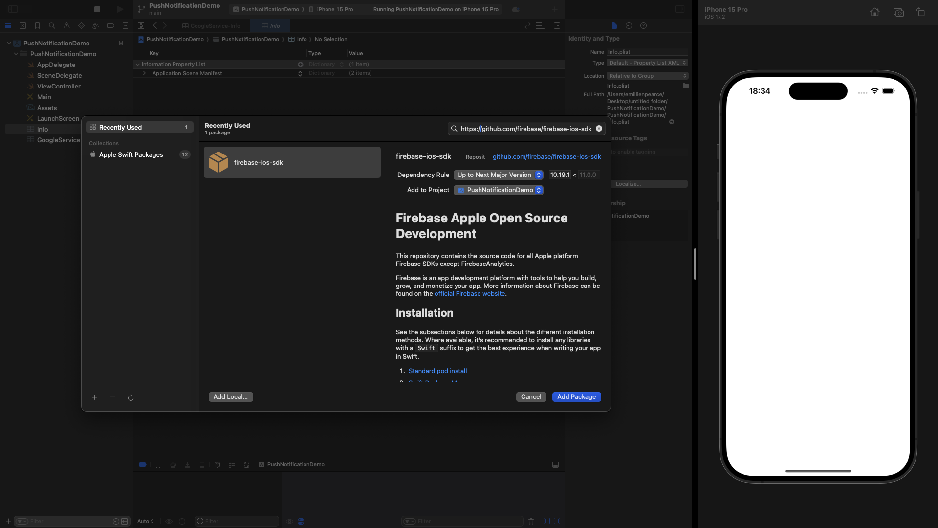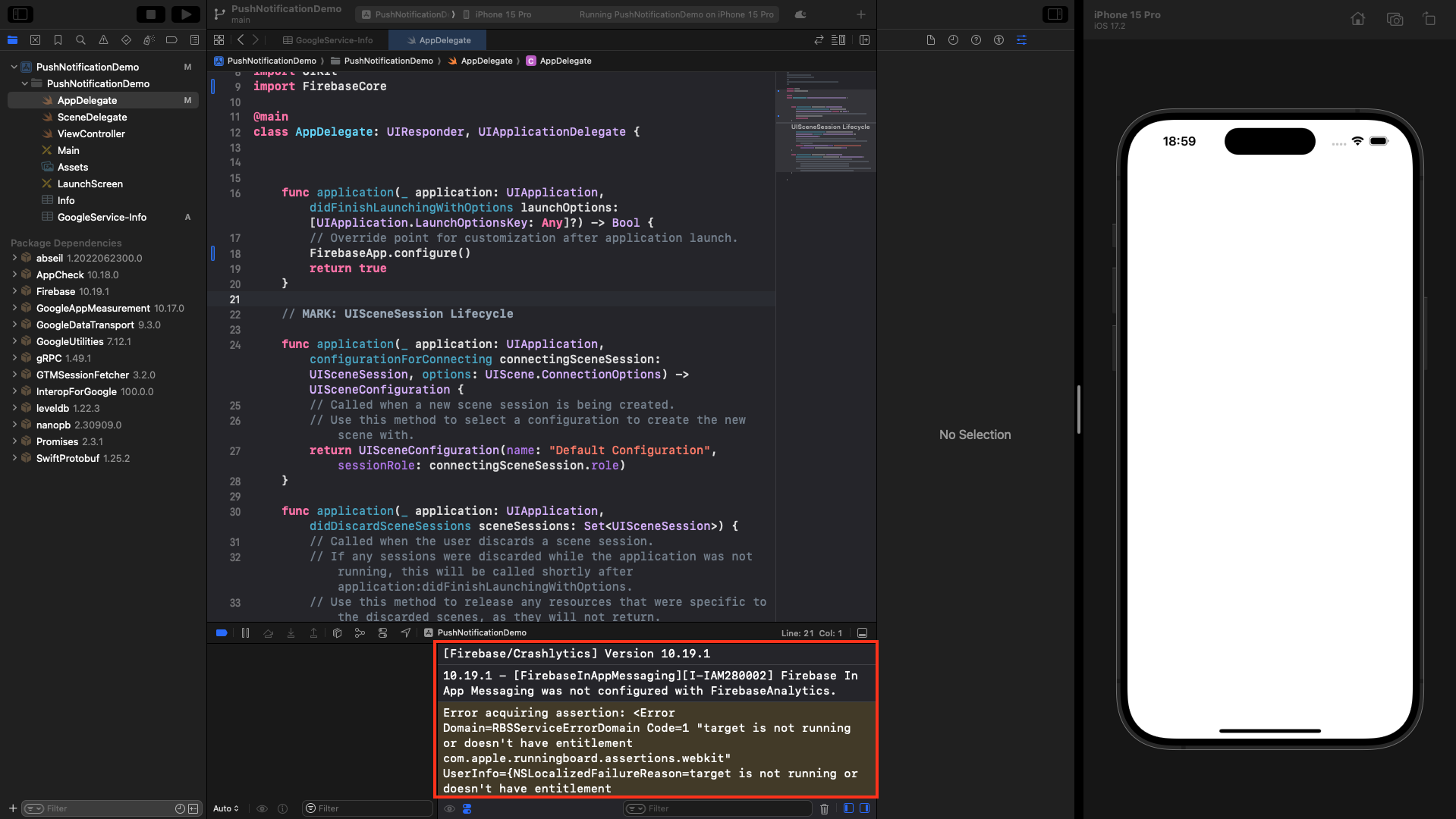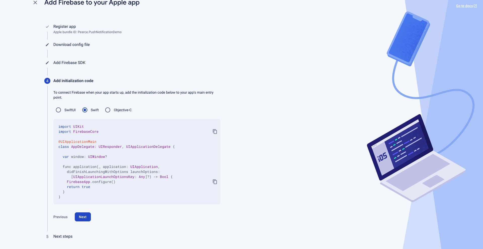 Then, we will copy firebaseapp.configure() and place it in didFinishLaunchingWithOptions method.