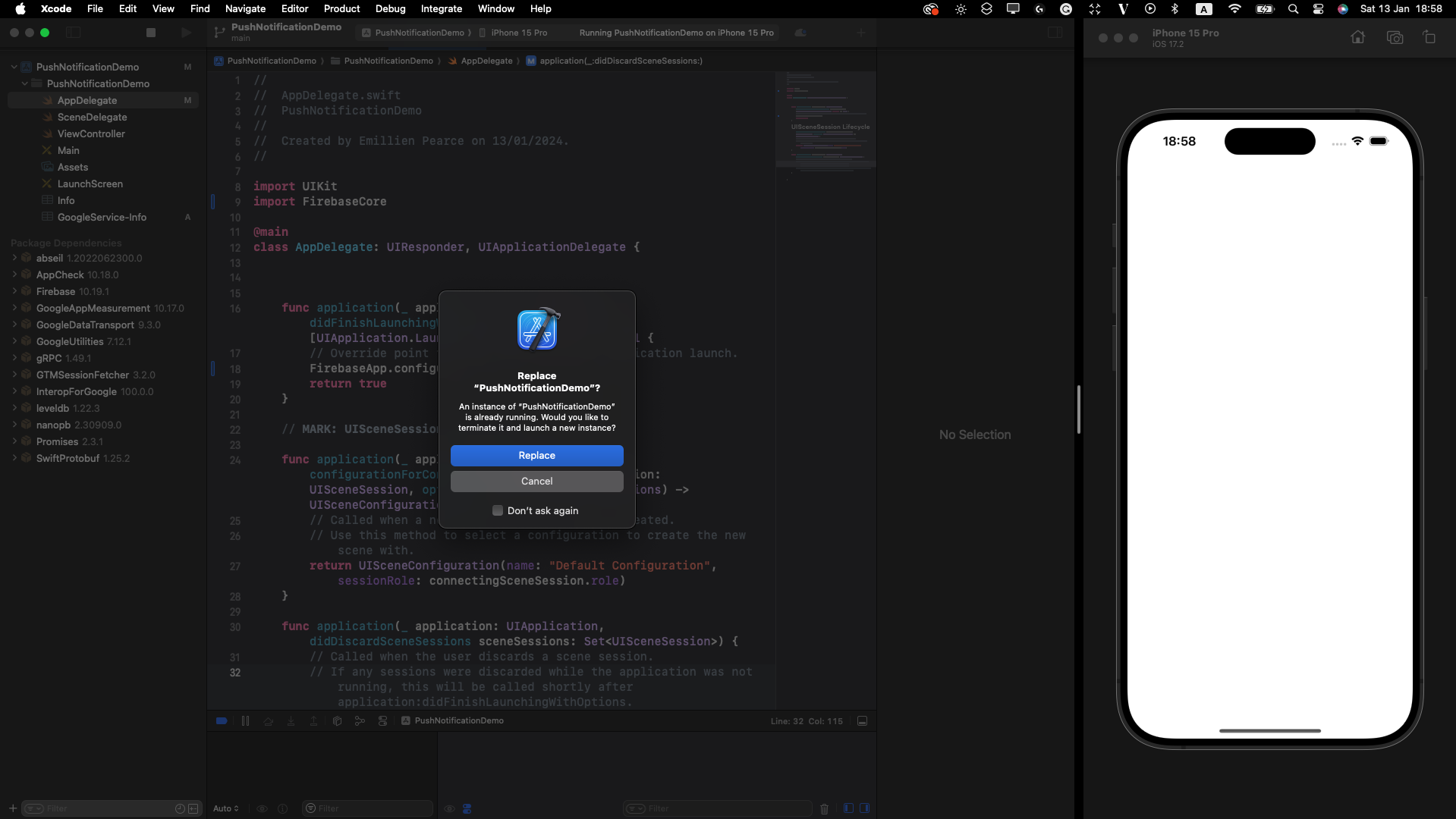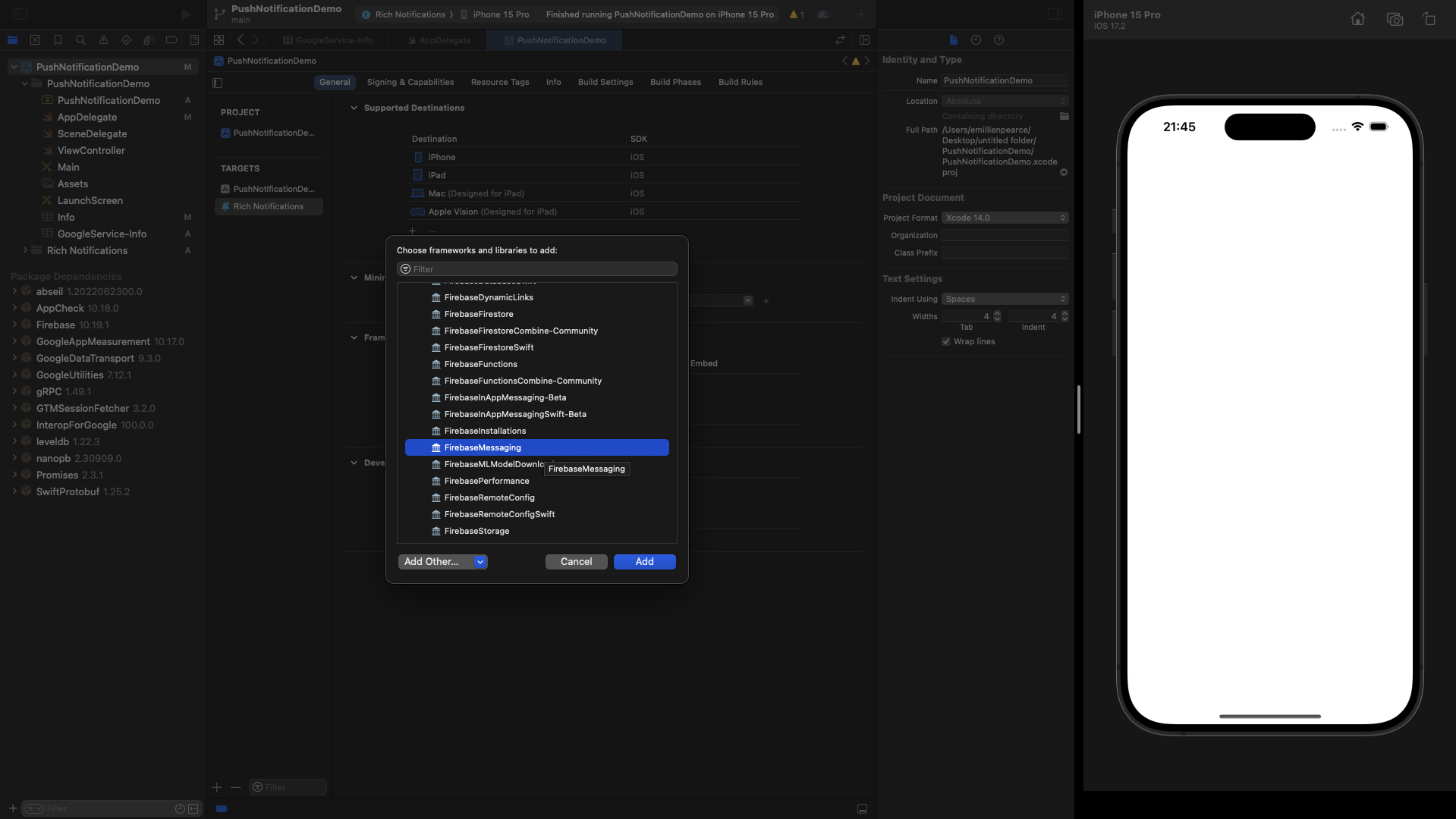 Let’s import the “FirebaseCore” dependency by adding import FirebaseCore to the beginning of the file.