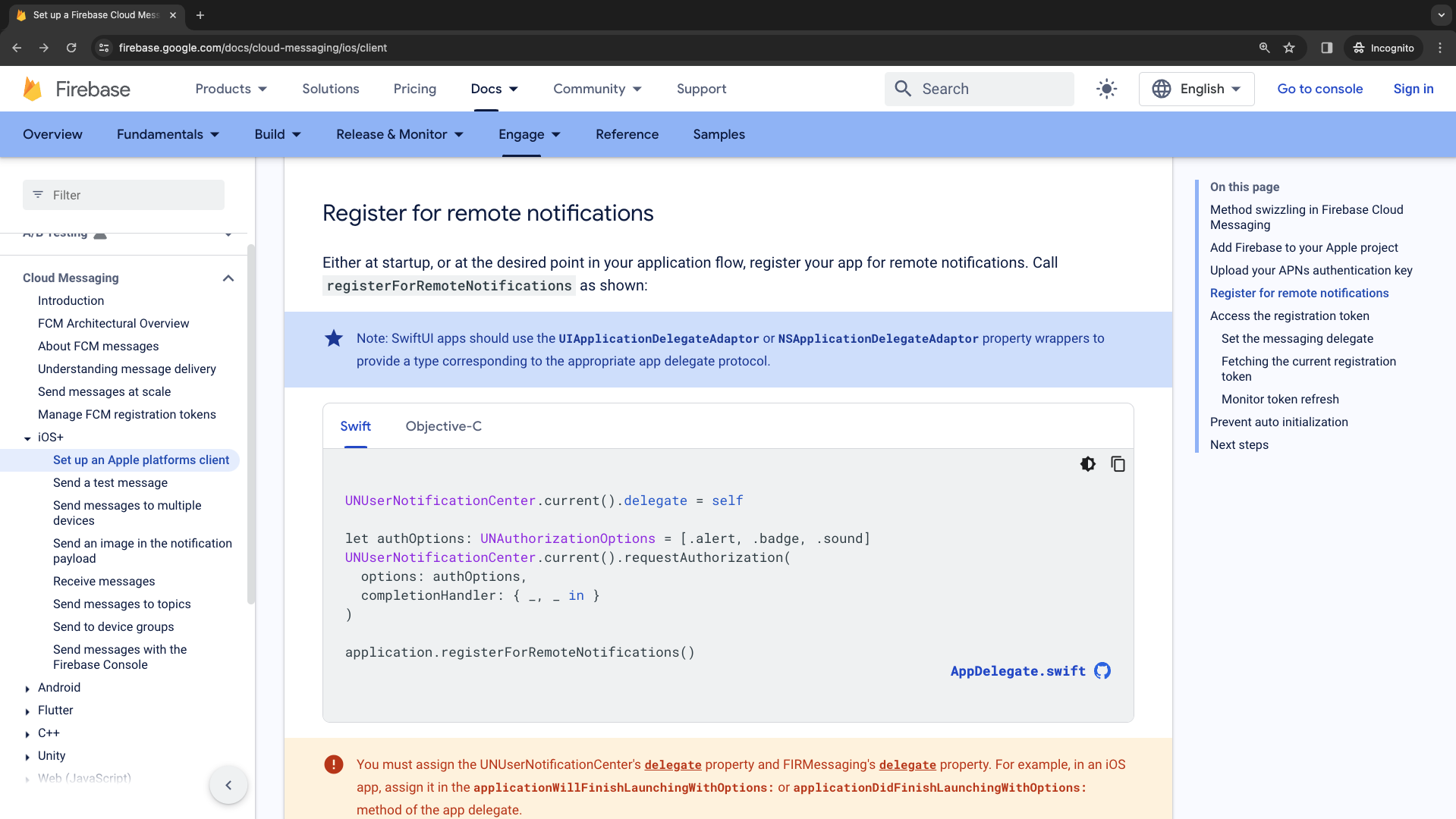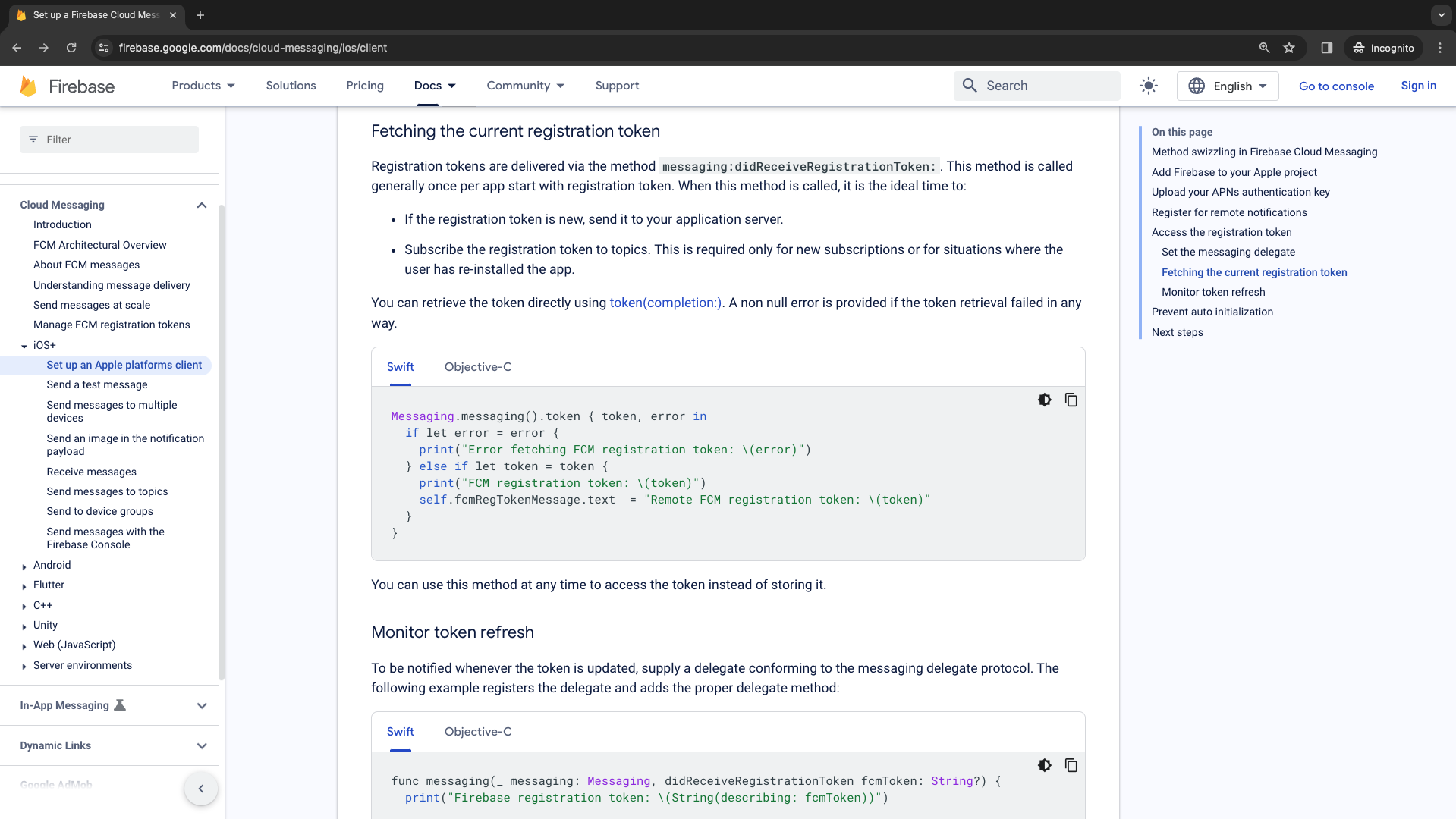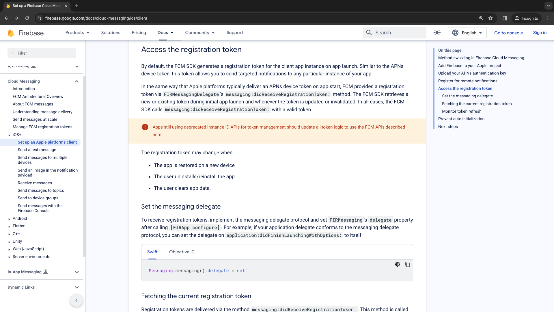 To do this, we must first set theMessaging.messaging().delegate = self inside the didFinishLaunchingWithOptions method.