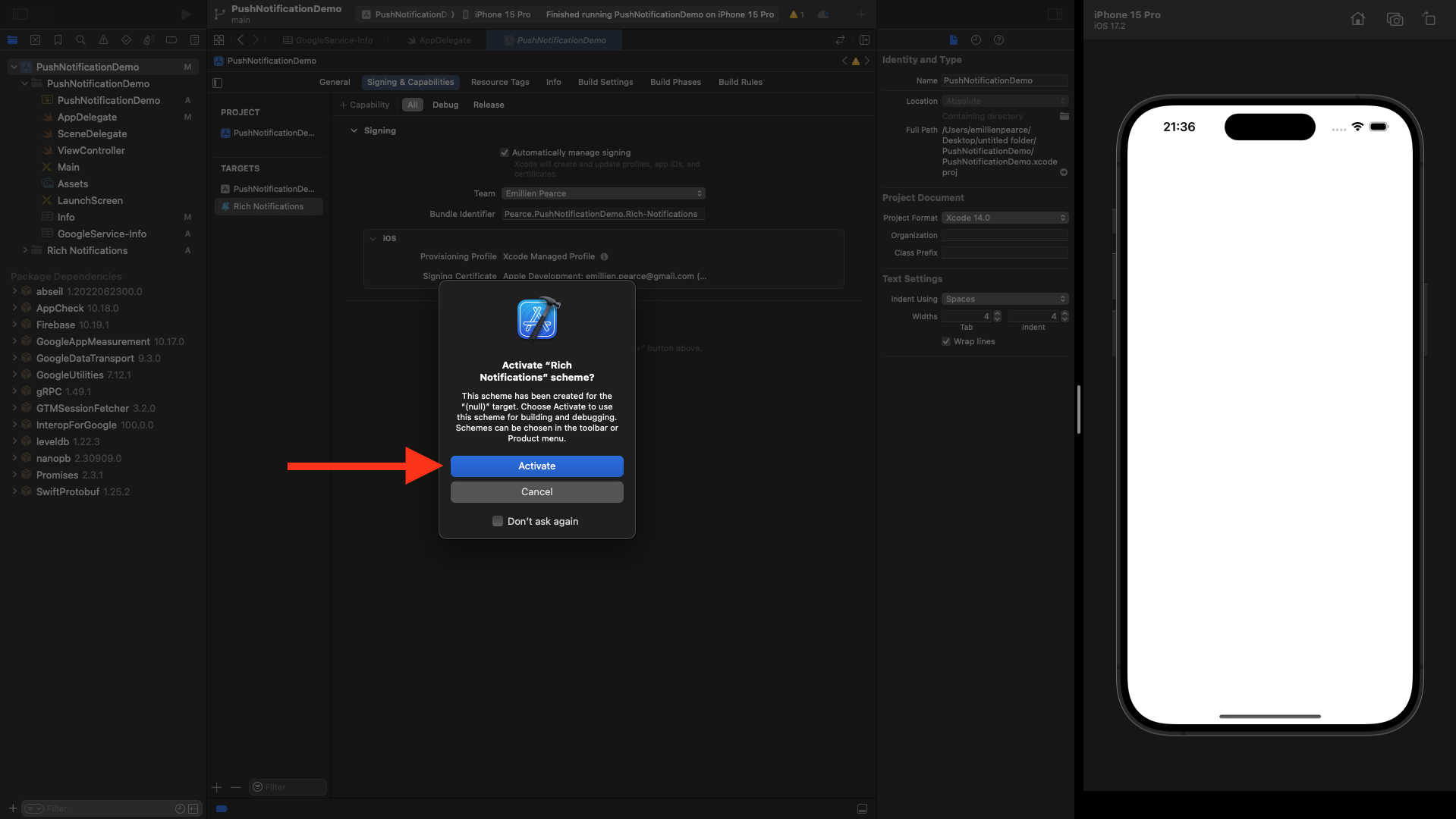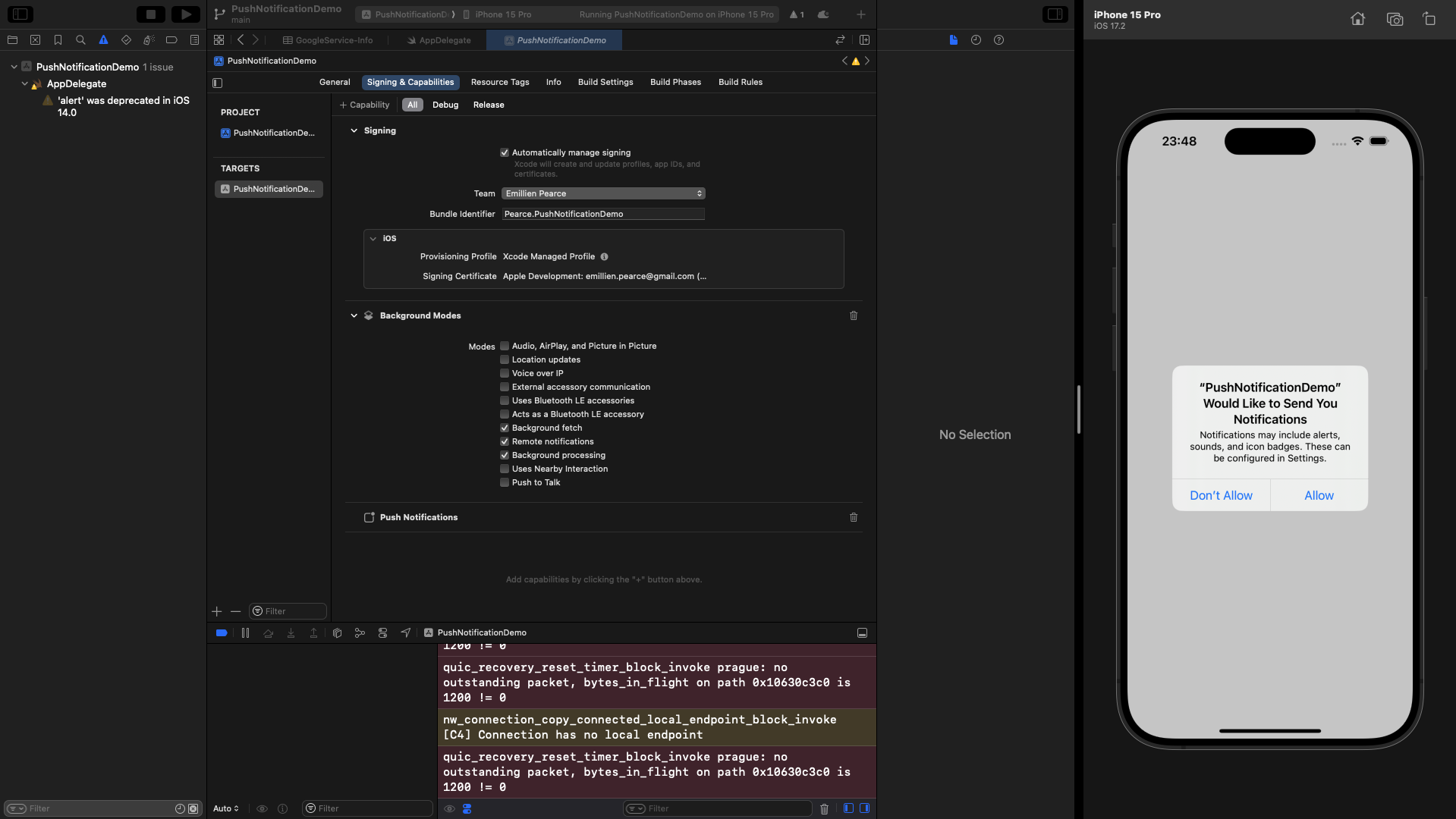 To complete this tutorial, you will need the following:- Apple Developer membership (to obtain the required permissions to send push notifications)