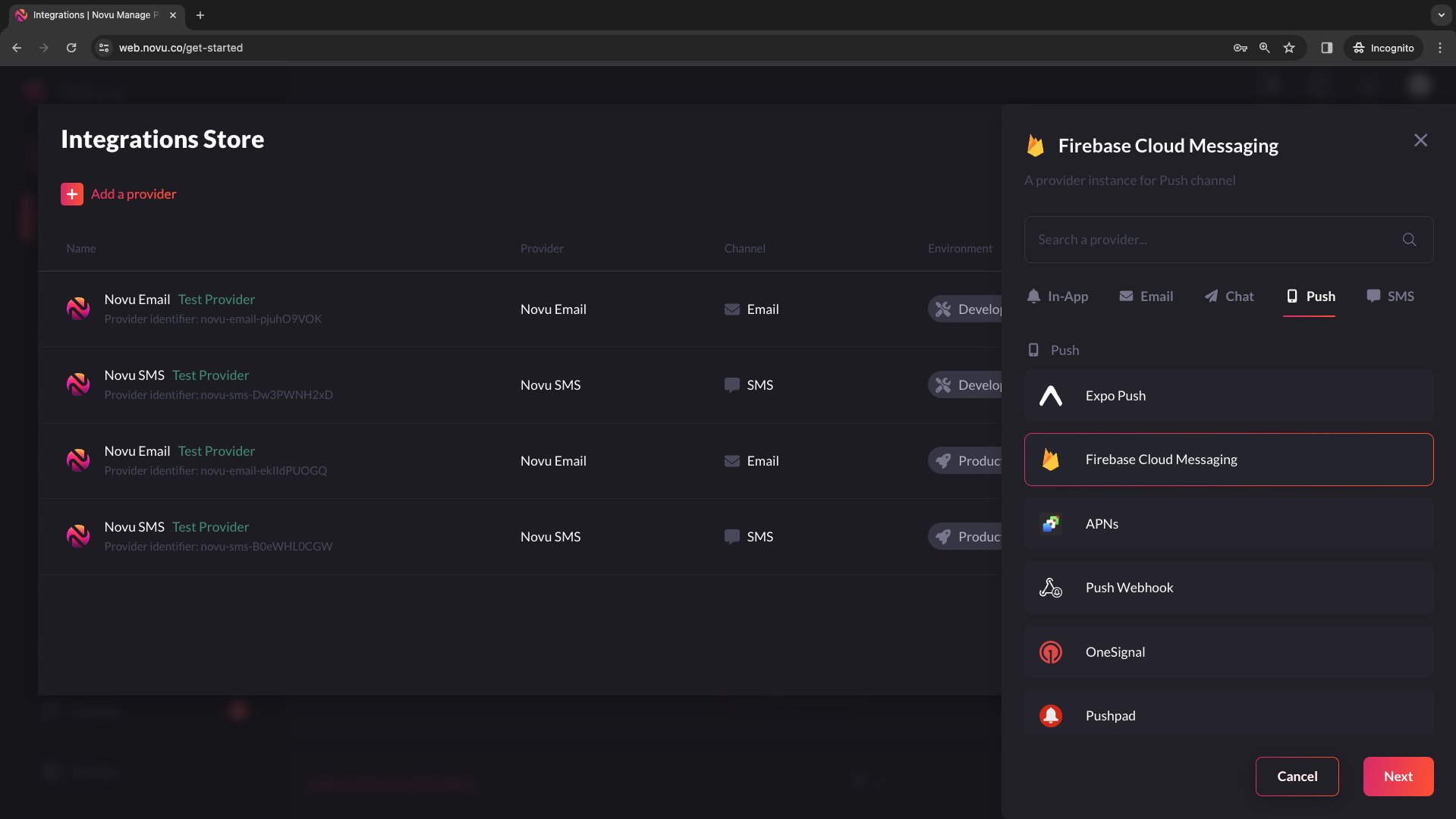 Sending a Push Notification to a Device(Android/iOS) with Novu