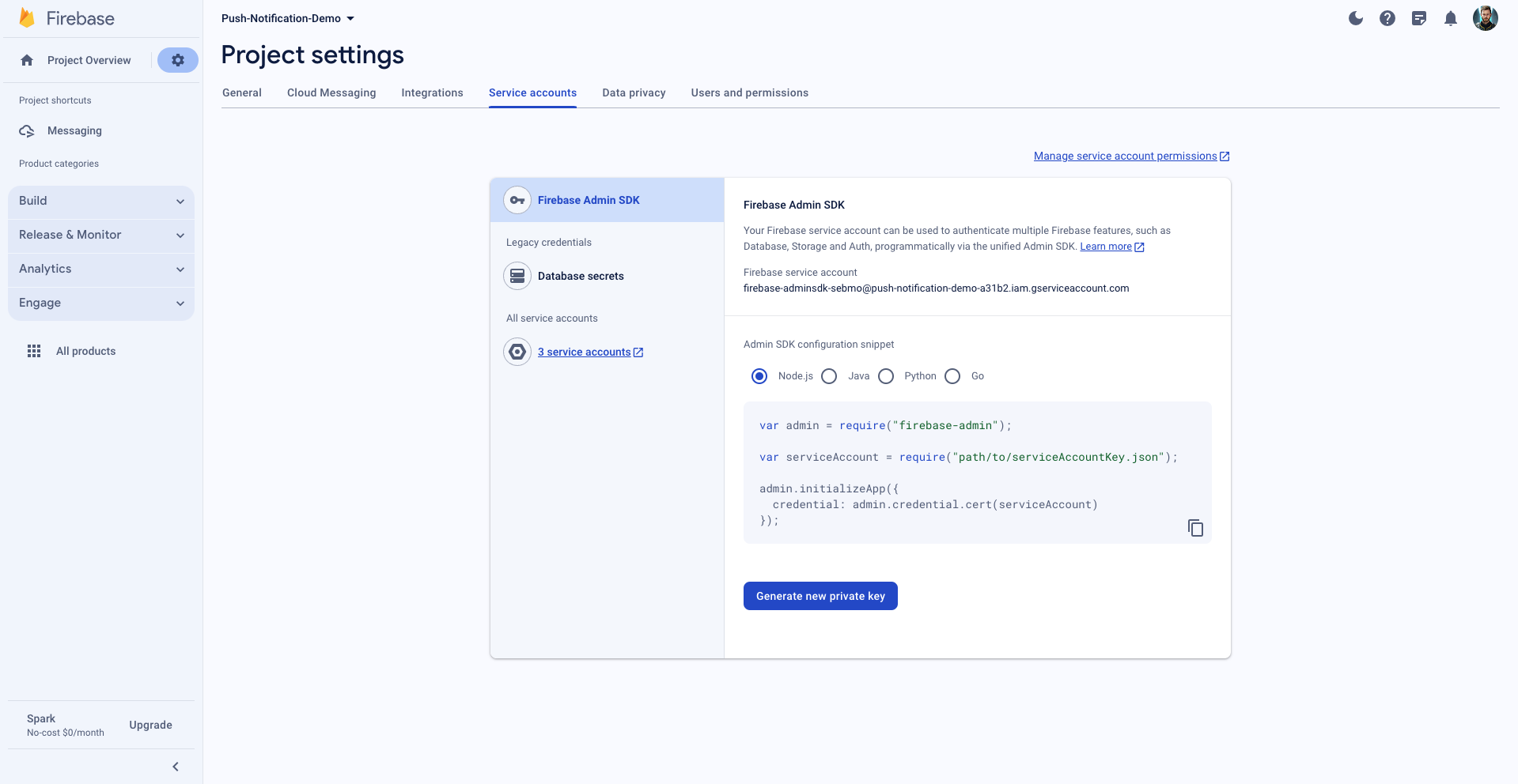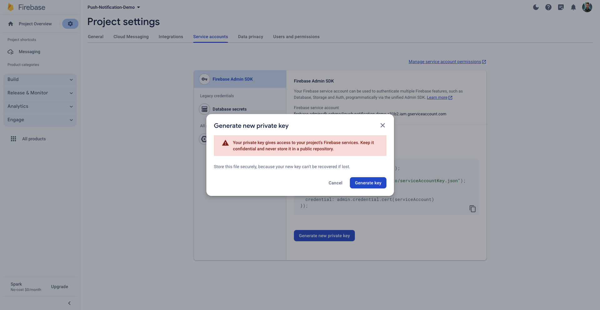 Generate keyto download the JSON file. - Once the file is on your machine, paste the entire JSON file content in the