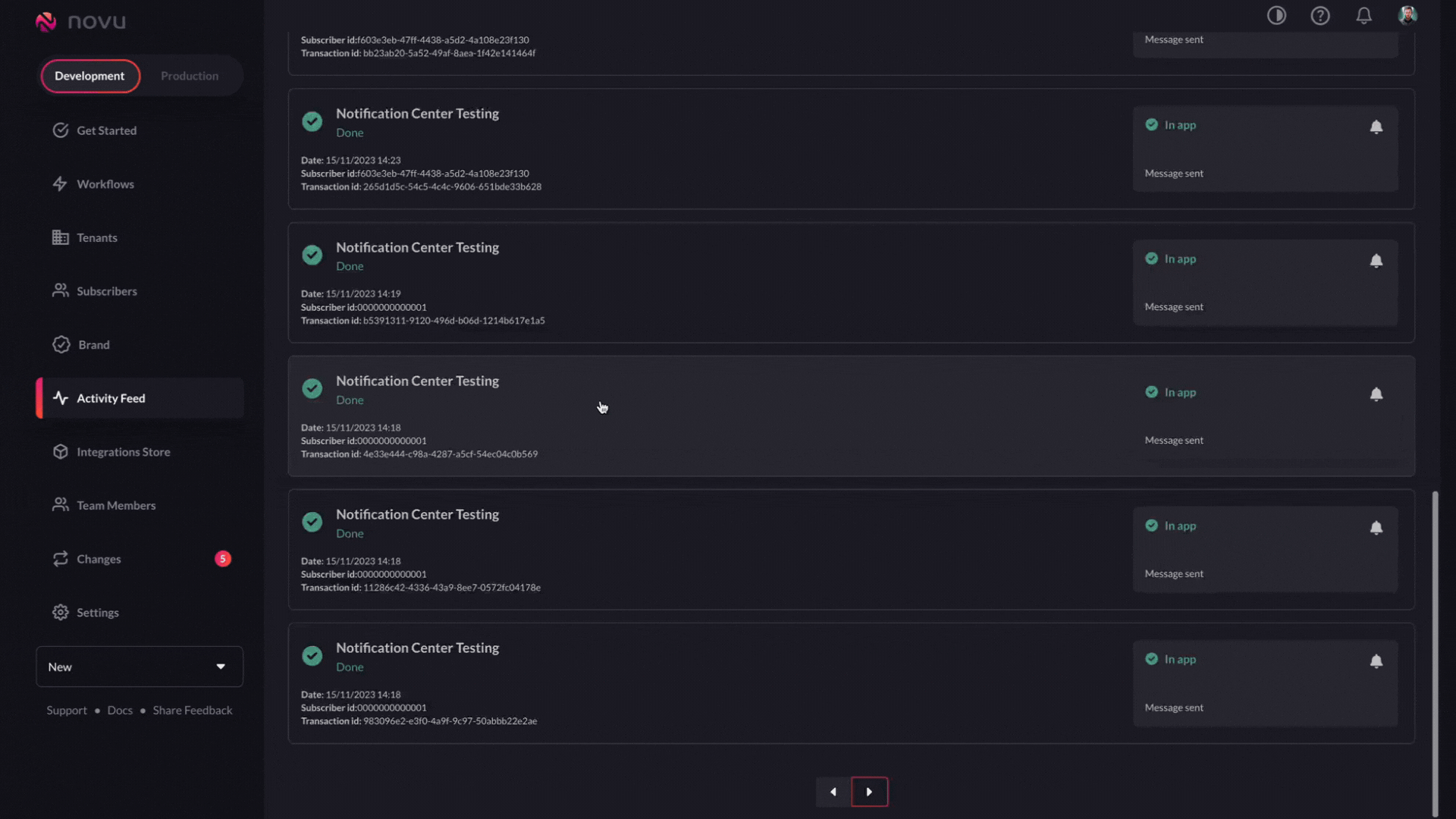 Whether you chose the first or second option to test your Destination Function, you can also check if the function triggered your workflow and whether it was delivered through Novu’s Activity Feed.
