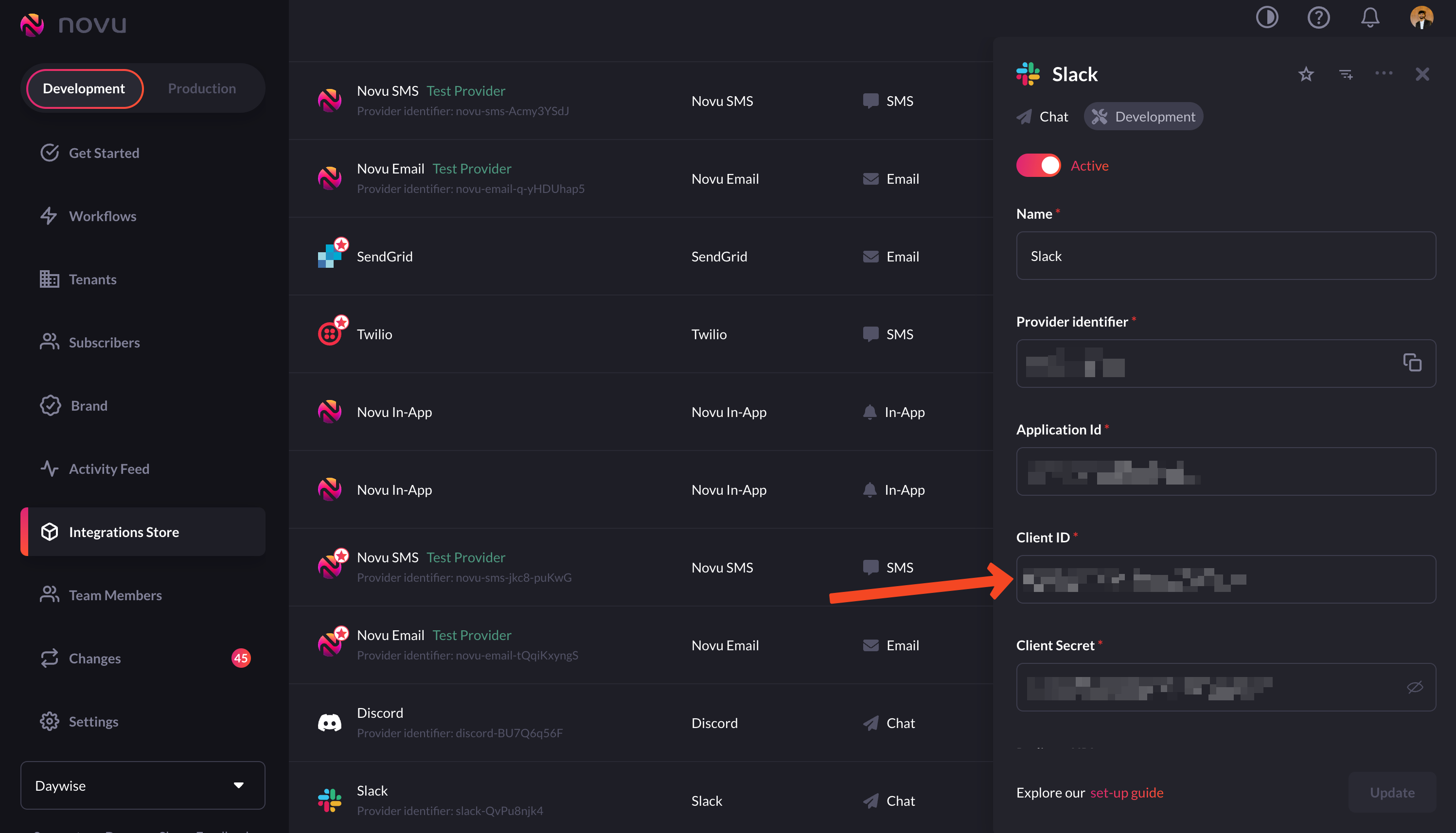 Client Idfrom the Slack Developer’s Dashboard for configuring Slack Integration in the Novu Web Dashboard later, so keep it handy.