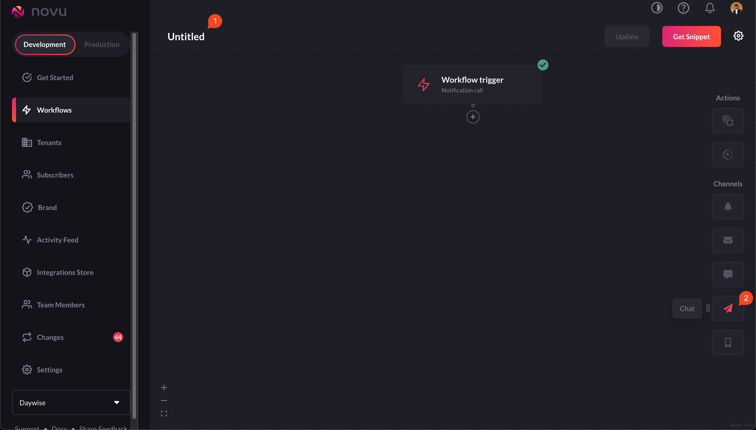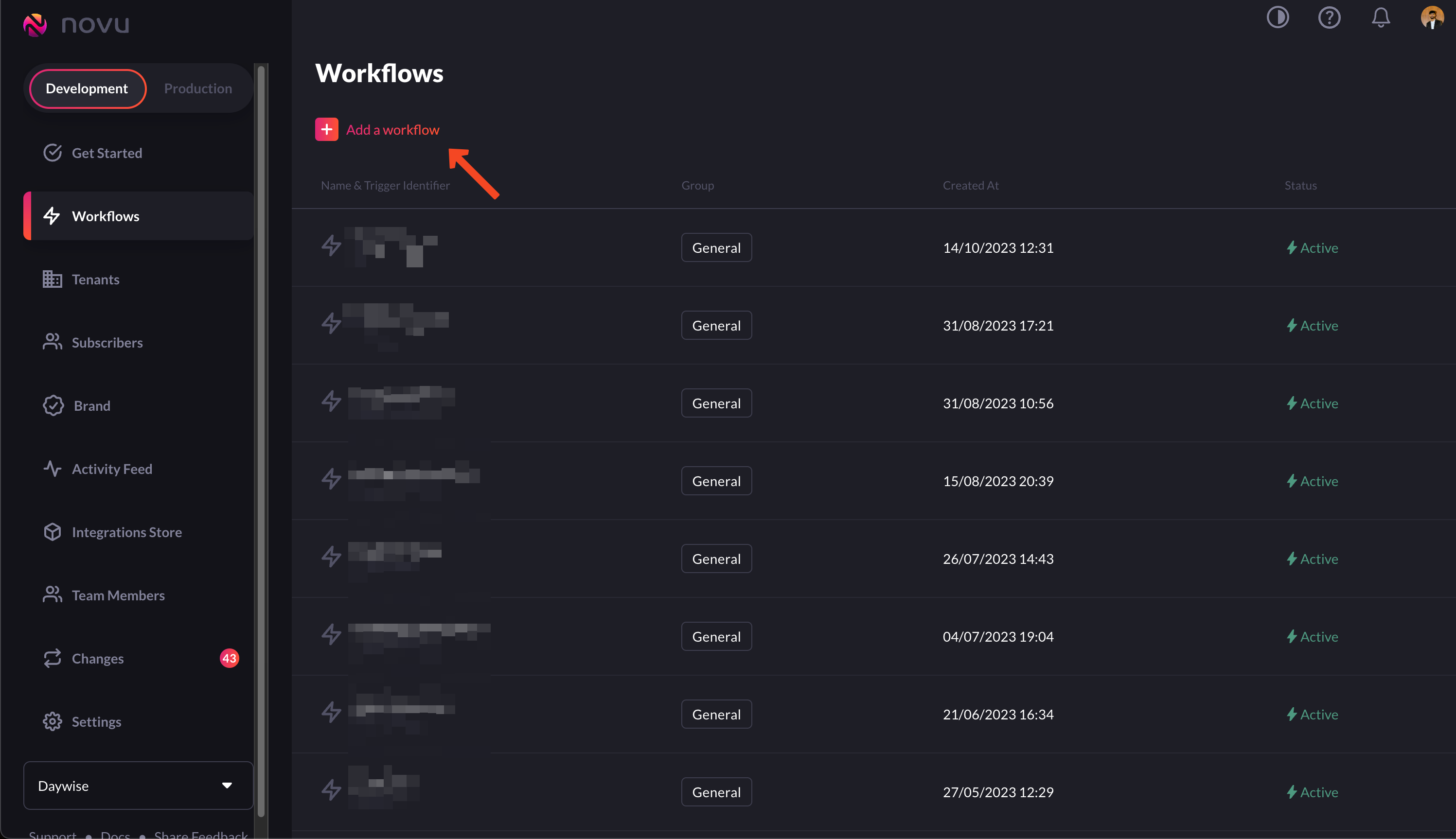 - To create a workflow, head to the workflow section in the Novu Web Dashboard.