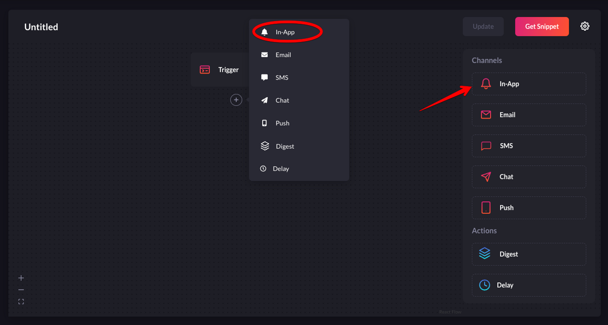 Click on the recently added “In-App” channel and configure it according to your preferences. Once you’re done, click “Update” to save your configuration.